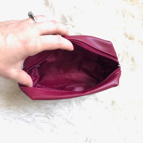 Chantecaille Two Toned Wine and Silver Cosmetic Zipper Pouch