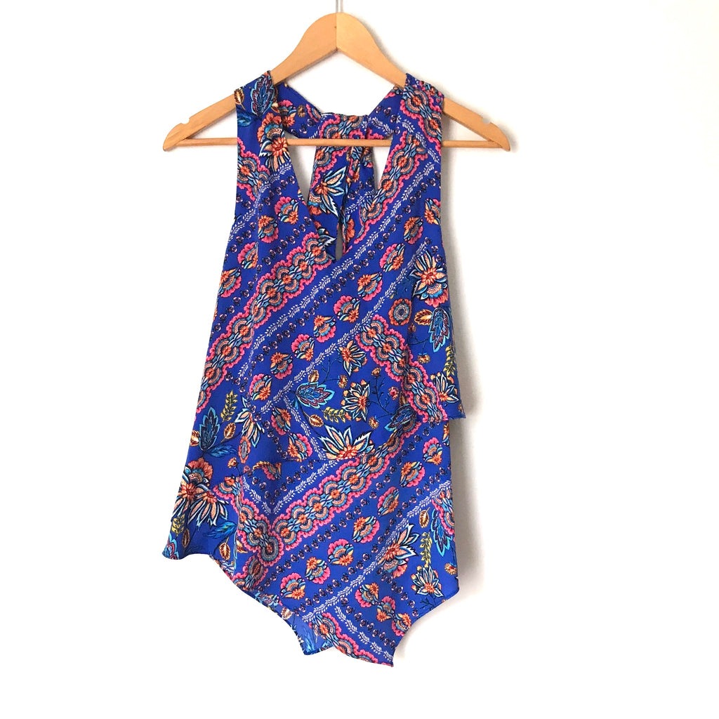 Laundry Blue Racerback Front Tiered Asymetrical Hem Blouse- Size XS