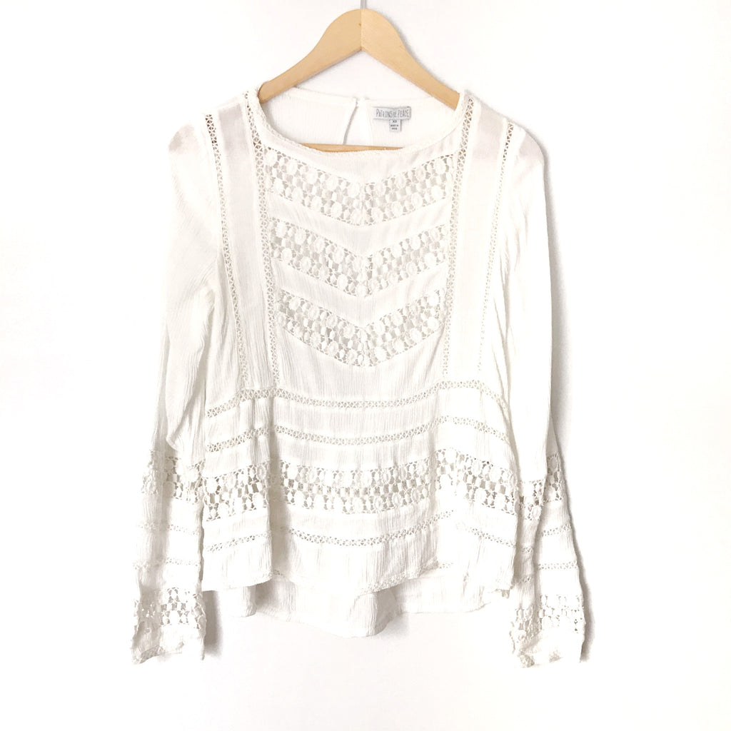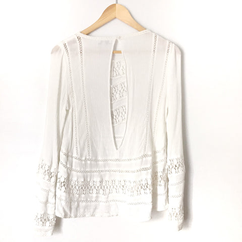 Patrons Of Peace White Crochet Long Sleeve Blouse with Exposed Back- Size XS