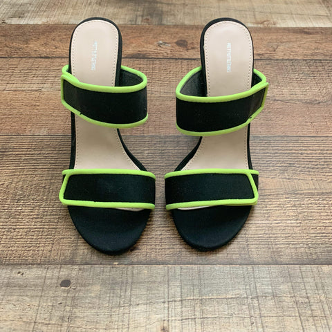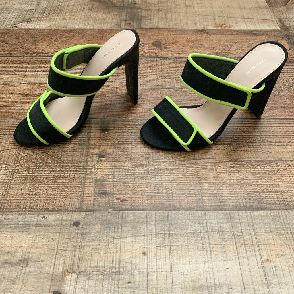 Pretty Little Thing Black/Neon Strap Mules- Size 5 (fit like 7)