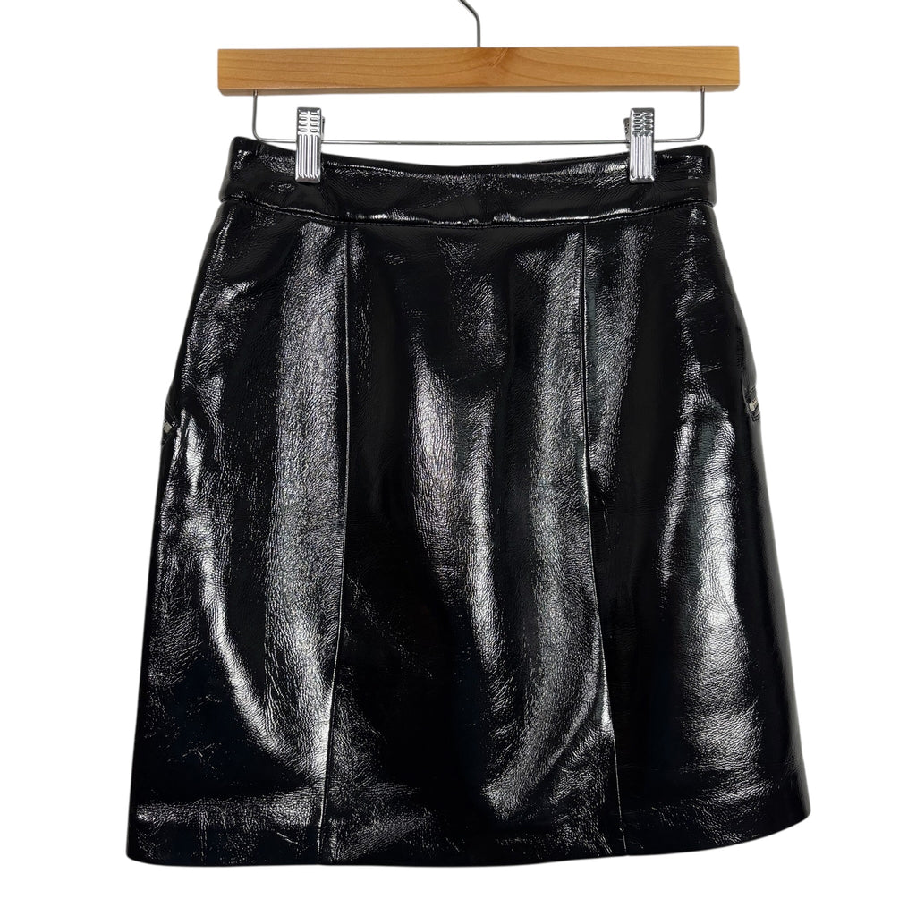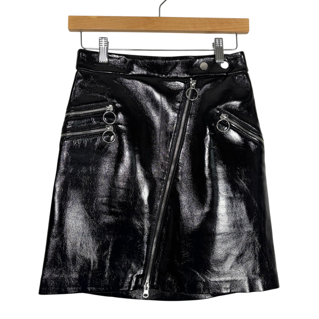 Zara Woman Black Front Zip Faux Leather Skirt - Size XS