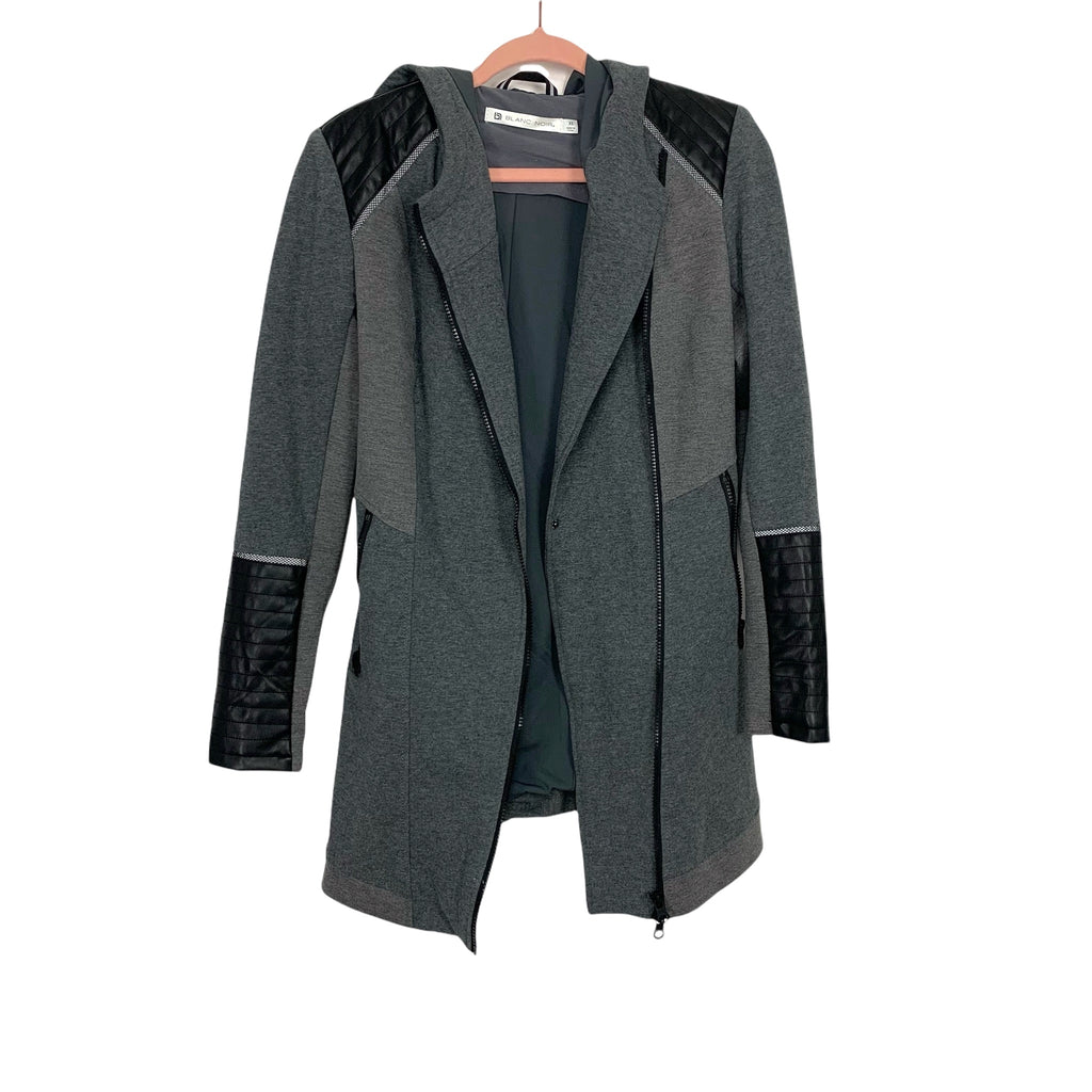 Blanc Noir Heatherd Grey Faux Leather Cuff Hooded Jacket- Size XS