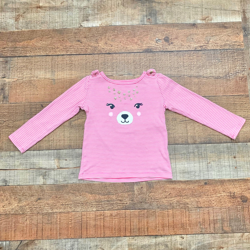 Carter's Pink/White Stripe Animal Face Top- Size 4T
