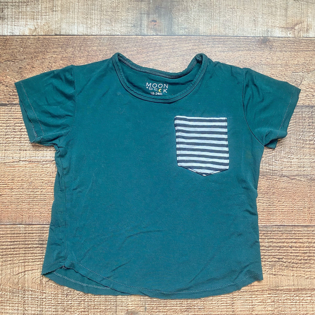 Moon + Beck Forest Green/Black/White Striped Pajama Set- Size 18-24M