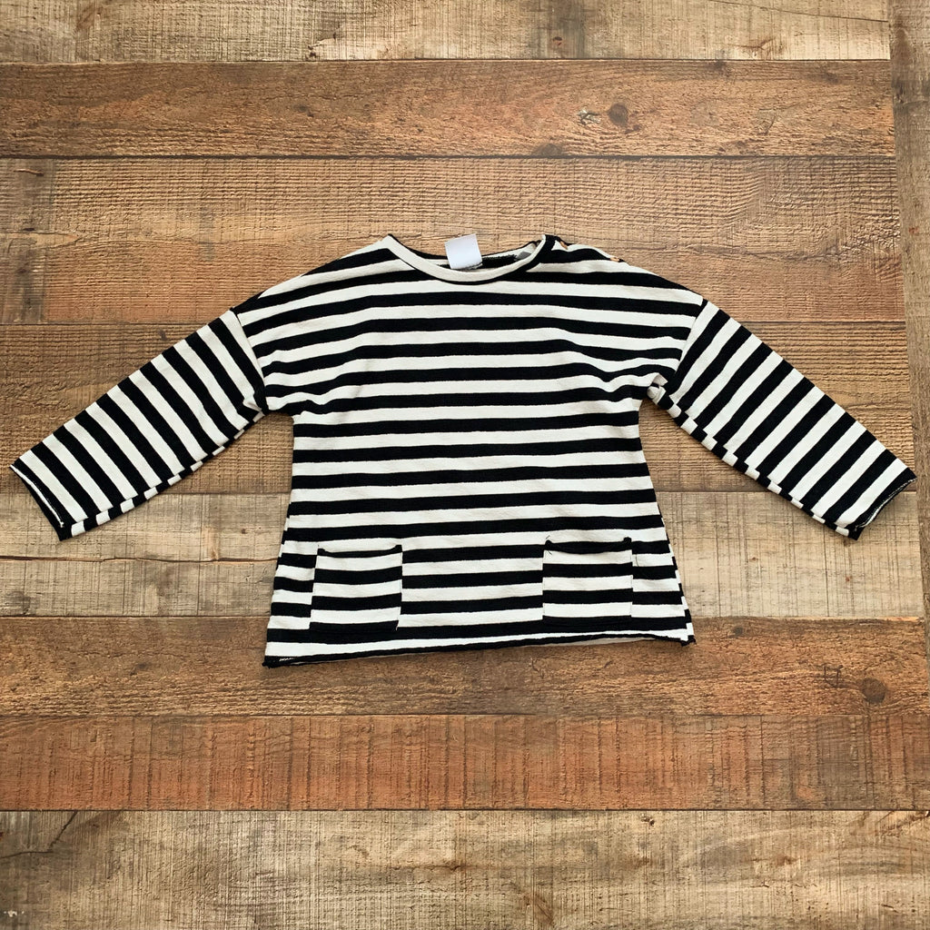 Zara Black/Cream Stripe Front Pocket Top- Size 4-5 Years