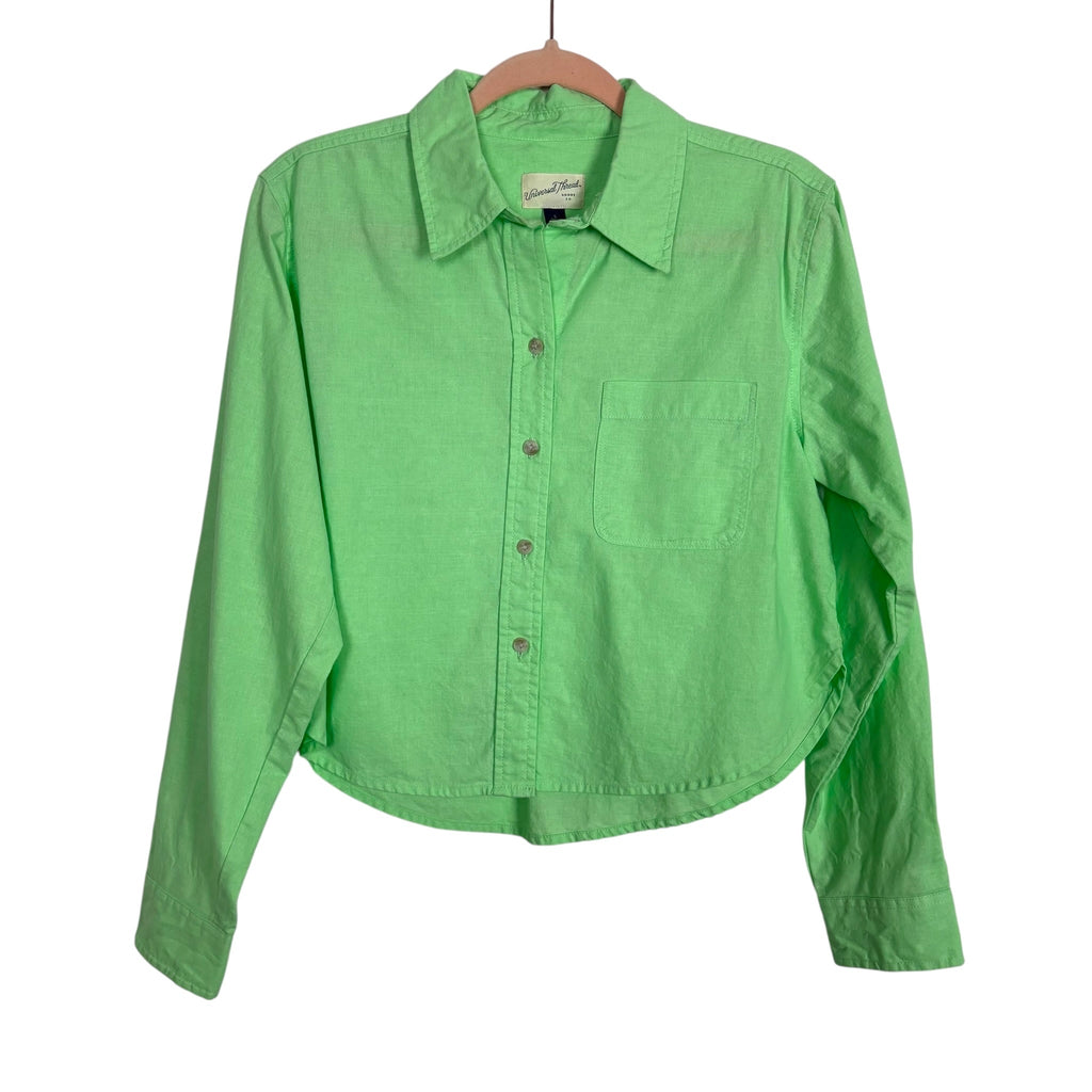 Universal Thread Lime Green Cropped Fit Button Up Top - Size S