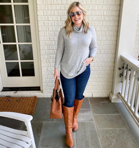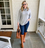 Caslon Light Grey Heathered Cowl Neck Round Hem Top- Size S
