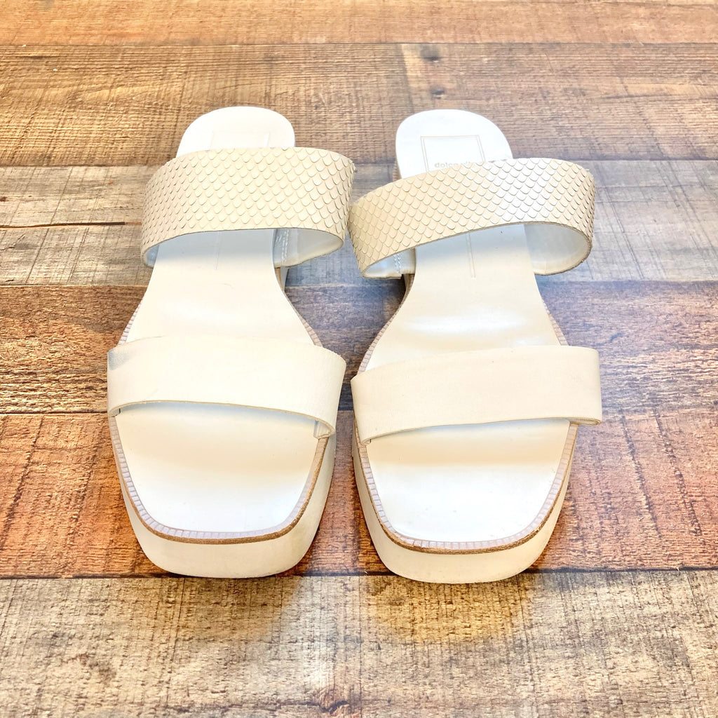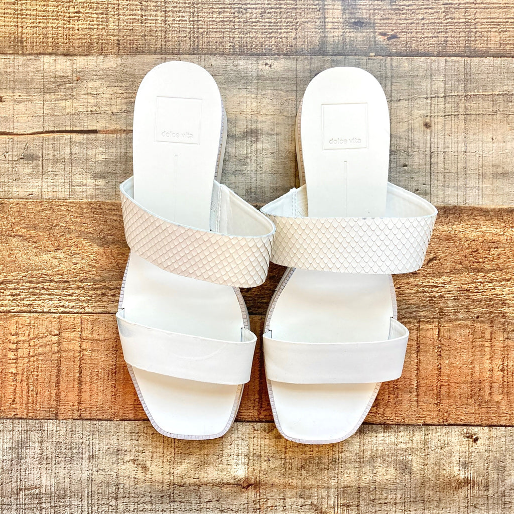 Dolce Vita White Embossed Leather Parni Slide Sandals - Size 9 (see notes)