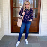 J Crew Navy/ Pink Dot Crewneck Sweatshirt- Size M