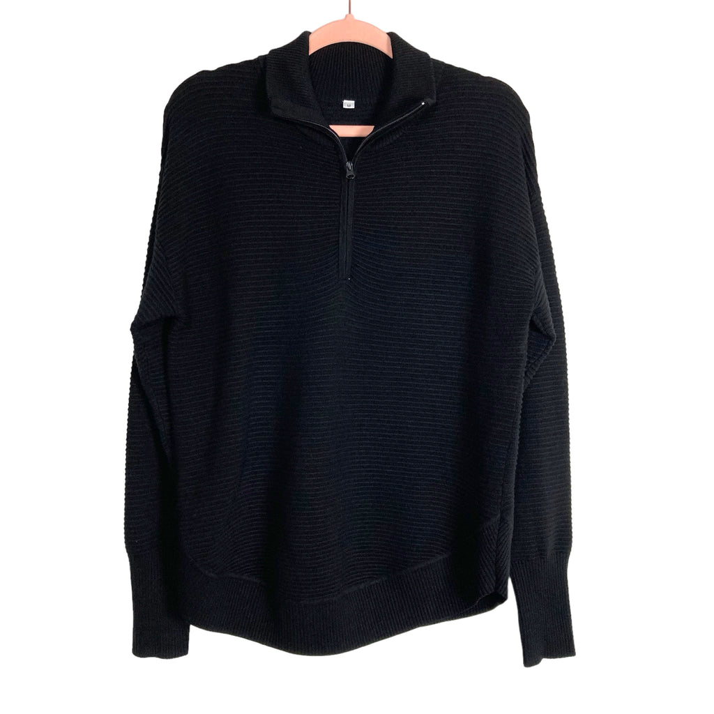 No Brand Black Ribbed Quarter Zip Pullover- Size M
