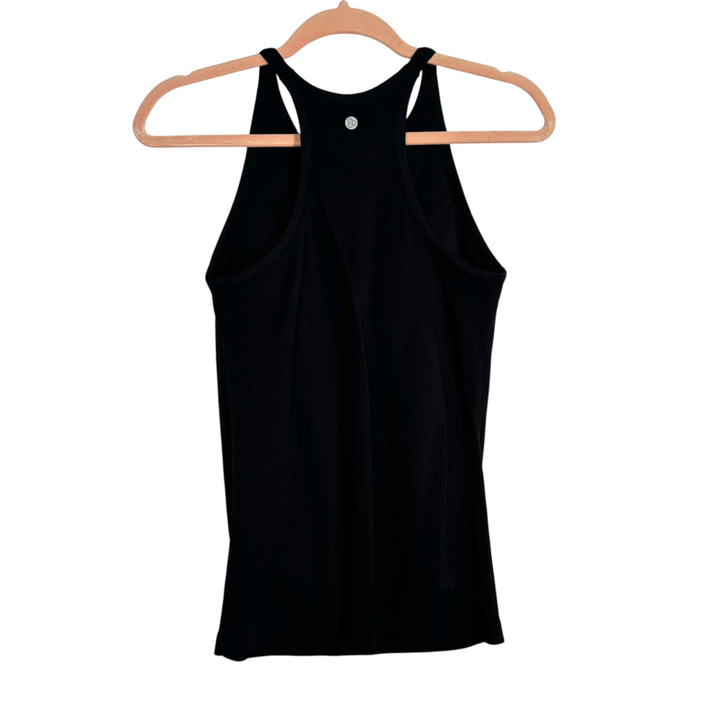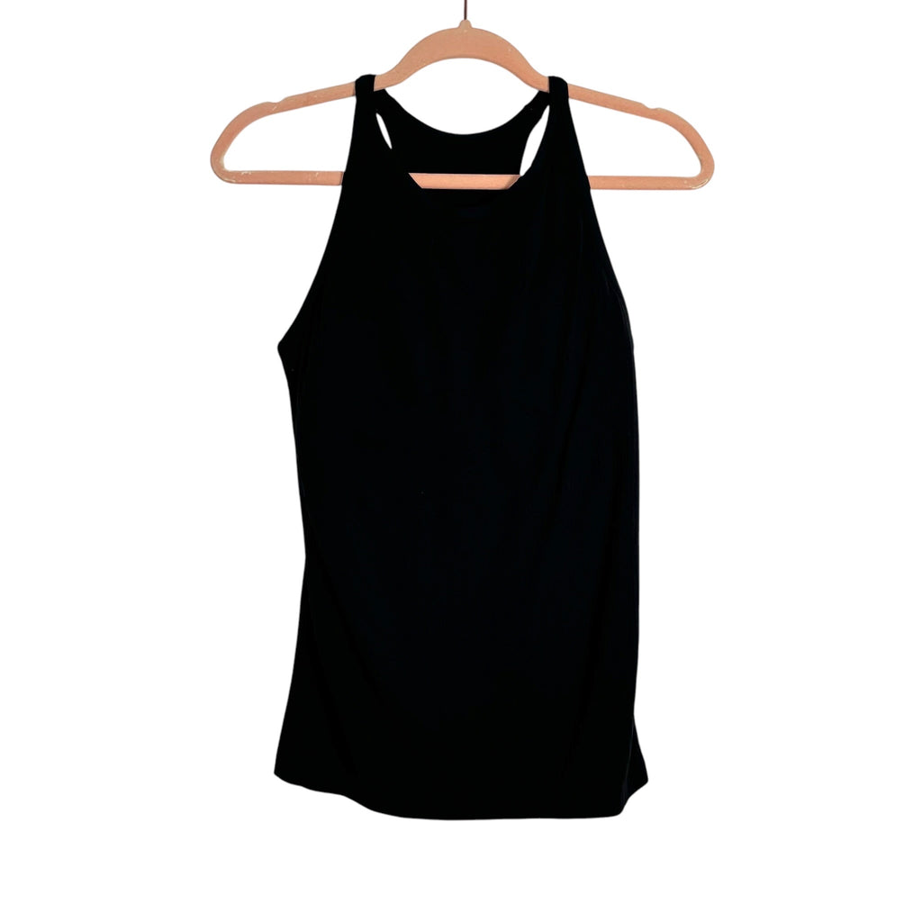 Zella Black Ribbed High Neck with Built-In Padded Bra Tank- Size M