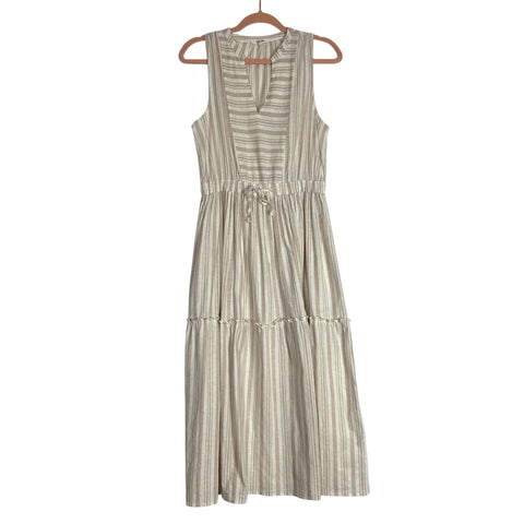 Splendid Striped Linen/Cotton Blend Drawstring Waist Tank Dress- Size S