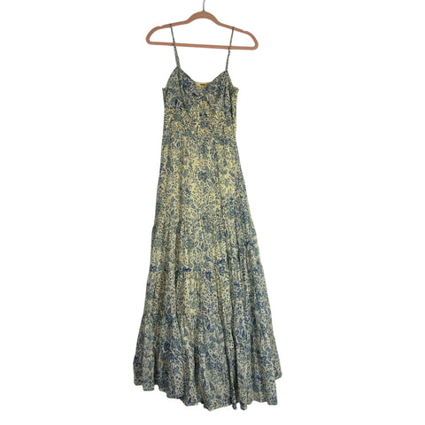 Free People Cream Blue Floral Printed Smocked Bodice Lined Dress- Size M