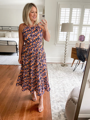 J Crew Navy Floral Side Cutouts Tie Strap Dress- Size M (sold out online)