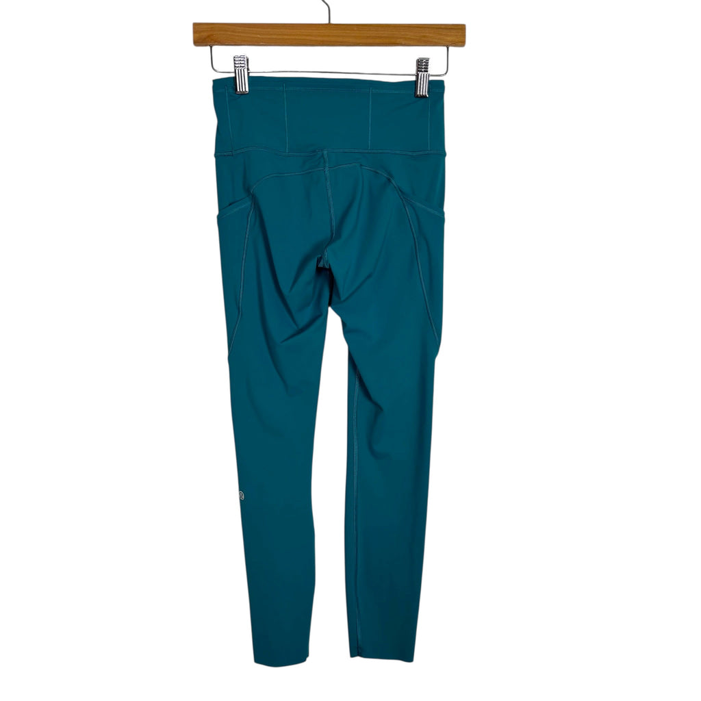 Lululemon Teal with Side Pockets Raw Hem Exposed Seams Leggings - Size 4 (Inseam 24.5”)