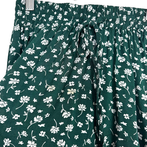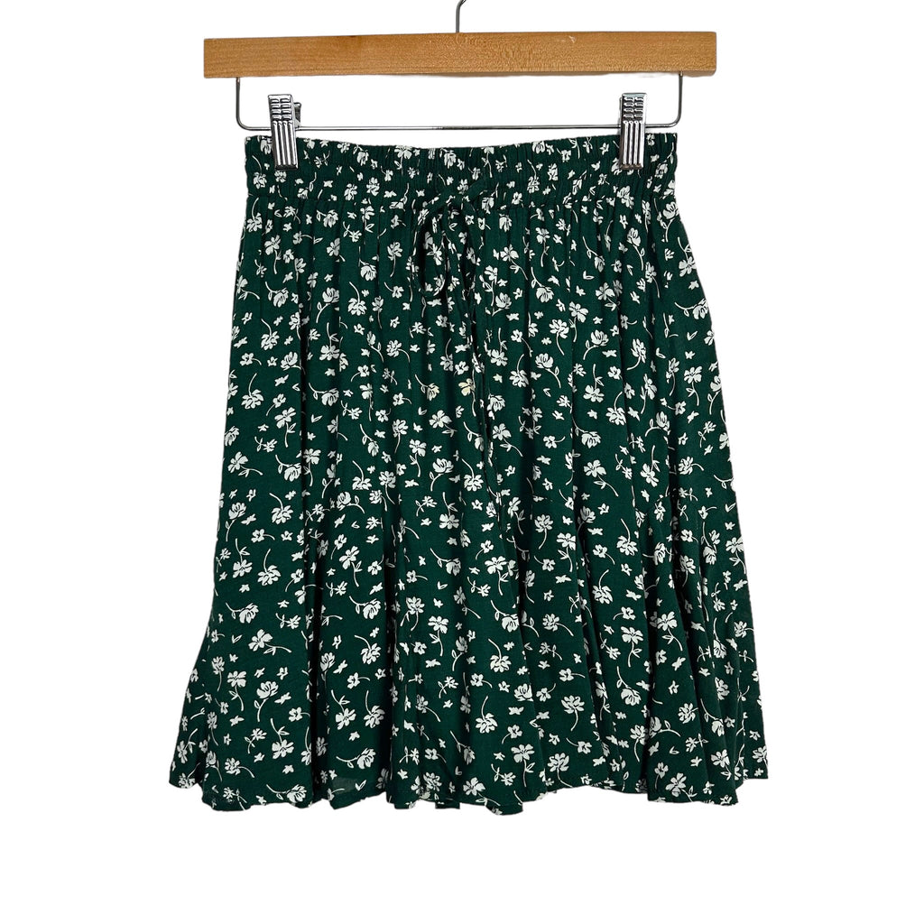 Polly Green with Cream Floral Print Drawstring Elastic Waist Skirt- Size 4 (see notes)