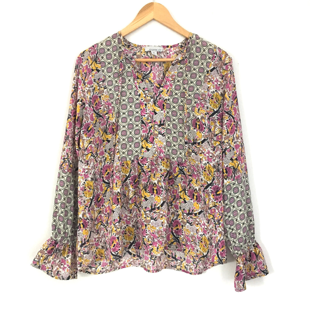 Allison Joy Floral Patterned Blouse with Ruffle Cuff- Size M