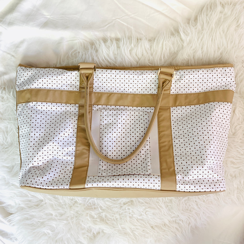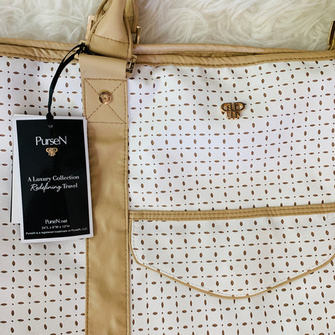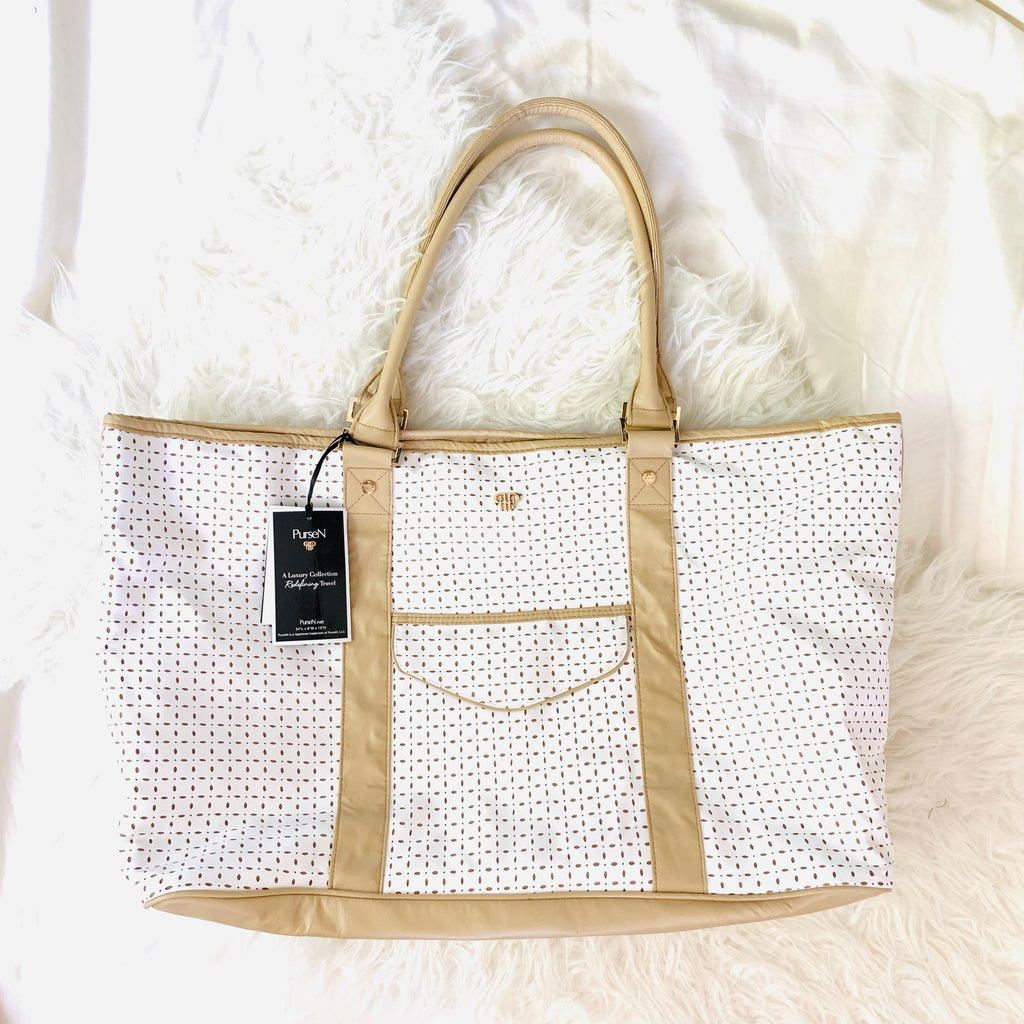 PurseN White & Tan Large VIP Travel Tote NWT (with 8 pockets and compartments!)