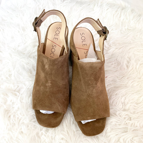 Sole Society Suede Slingback Peep Toe with Block Heel- Size 8