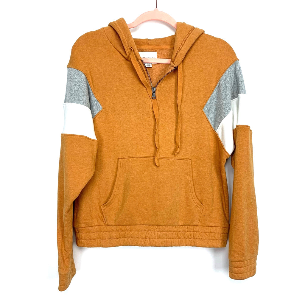 American Eagle Orange/Grey/White Quarter Zip Hoodie- Size S