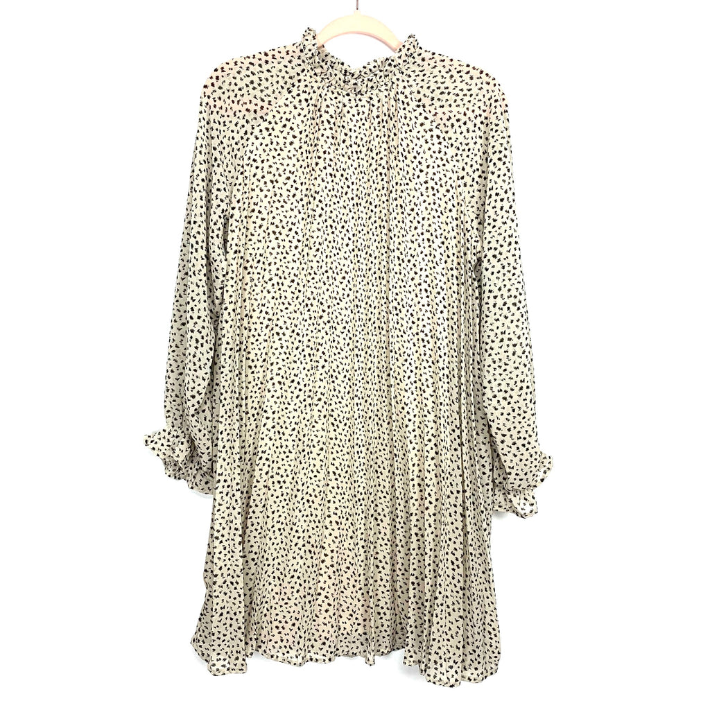 Blush Boutique Taupe Black Dot Pleaded Dress NWT- Size S