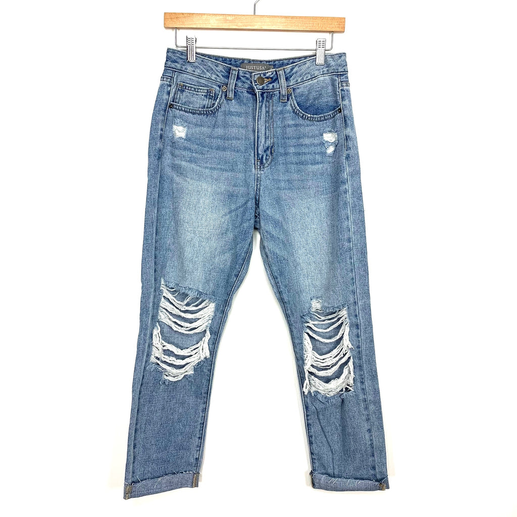 JustUSA Light Wash Distressed Jeans- Size 4 (Inseam 24.5" when cuffed as pictured)