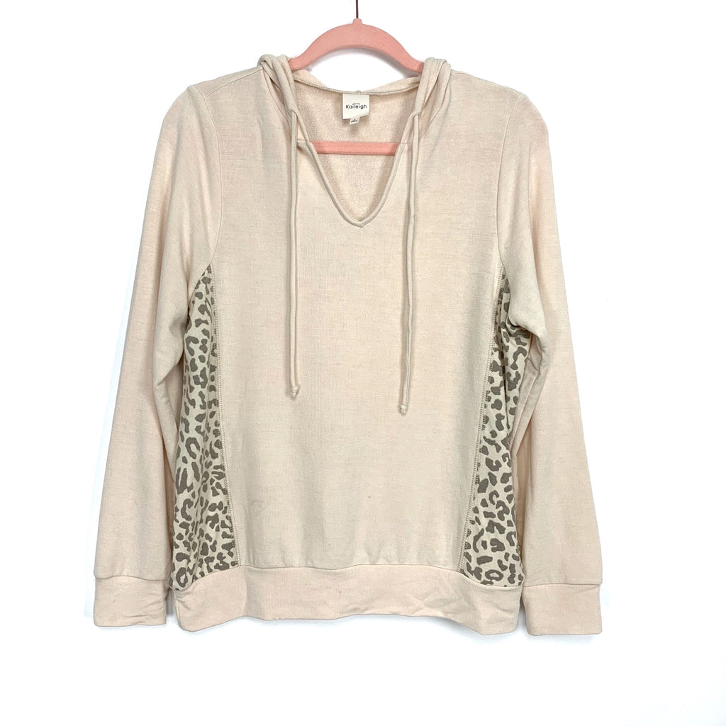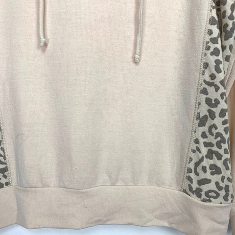 Kaileigh Blush Pink and Animal Print Hooded Pullover Sweatshirt Top- Size S