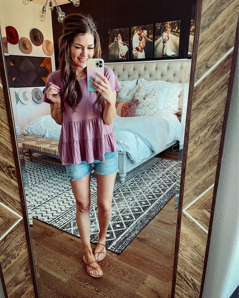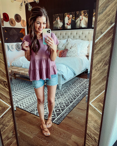 Pink Lily Purple/Pink Ruffle Hem Top- Size S