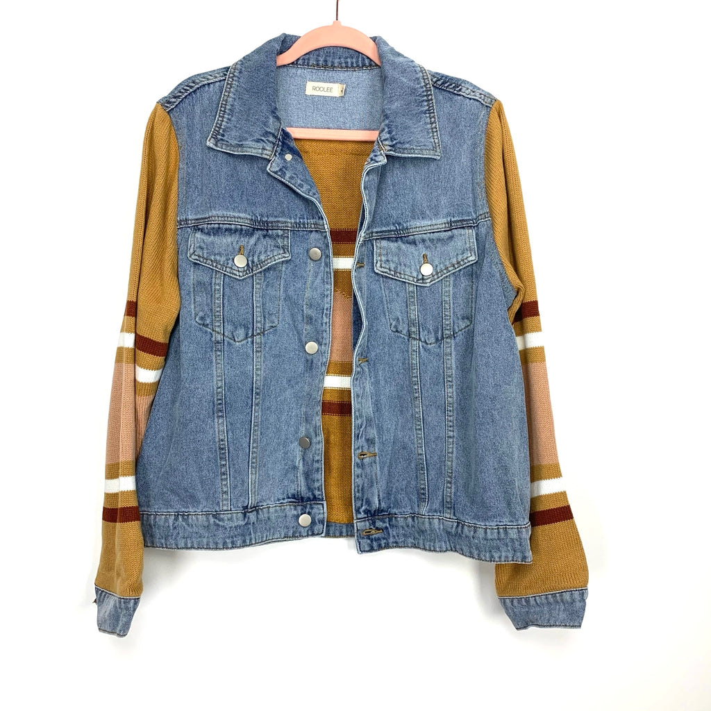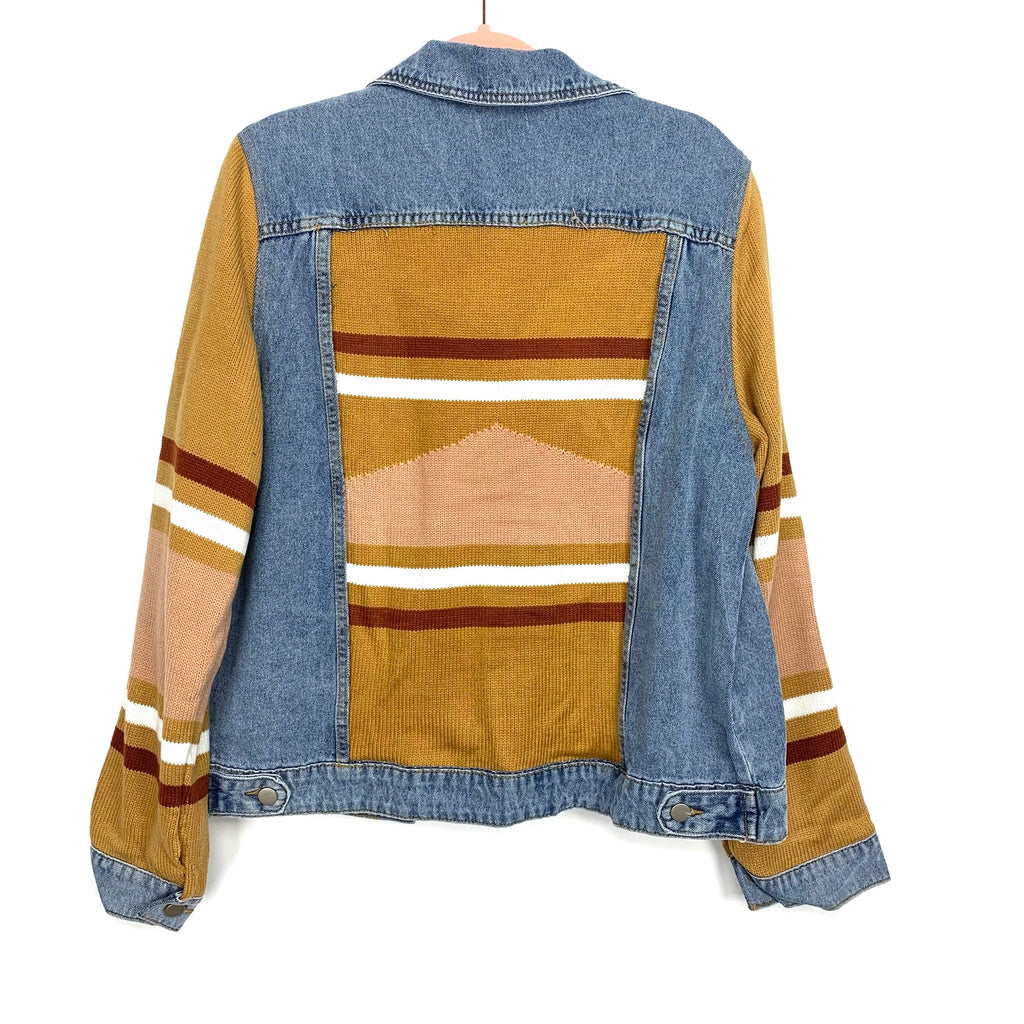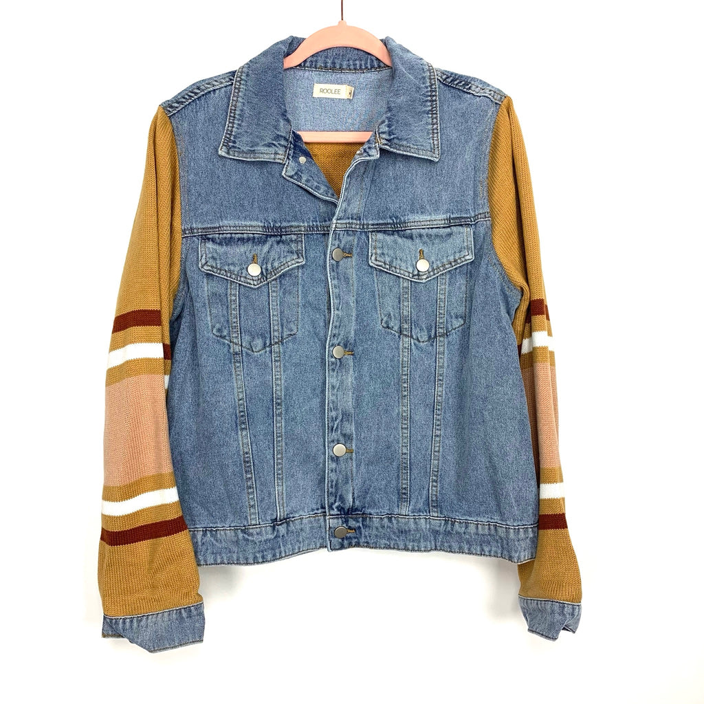 Roolee Sweater Knit Back and Sleeves Denim Jacket- Size M