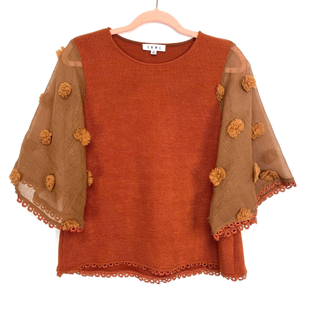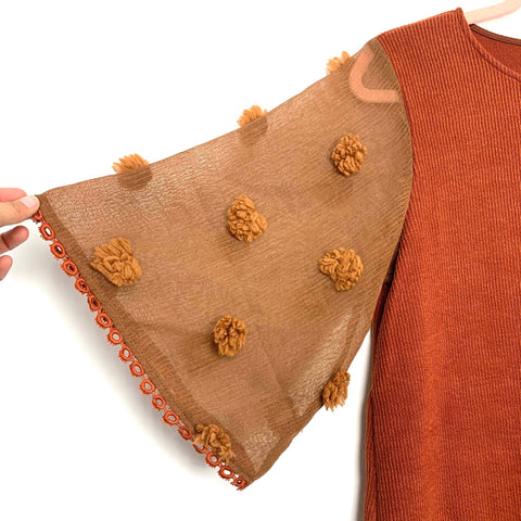 THML Rust Ribbed Sweater Like Top with Sheer 3/4 Bell Sleeves- Size S