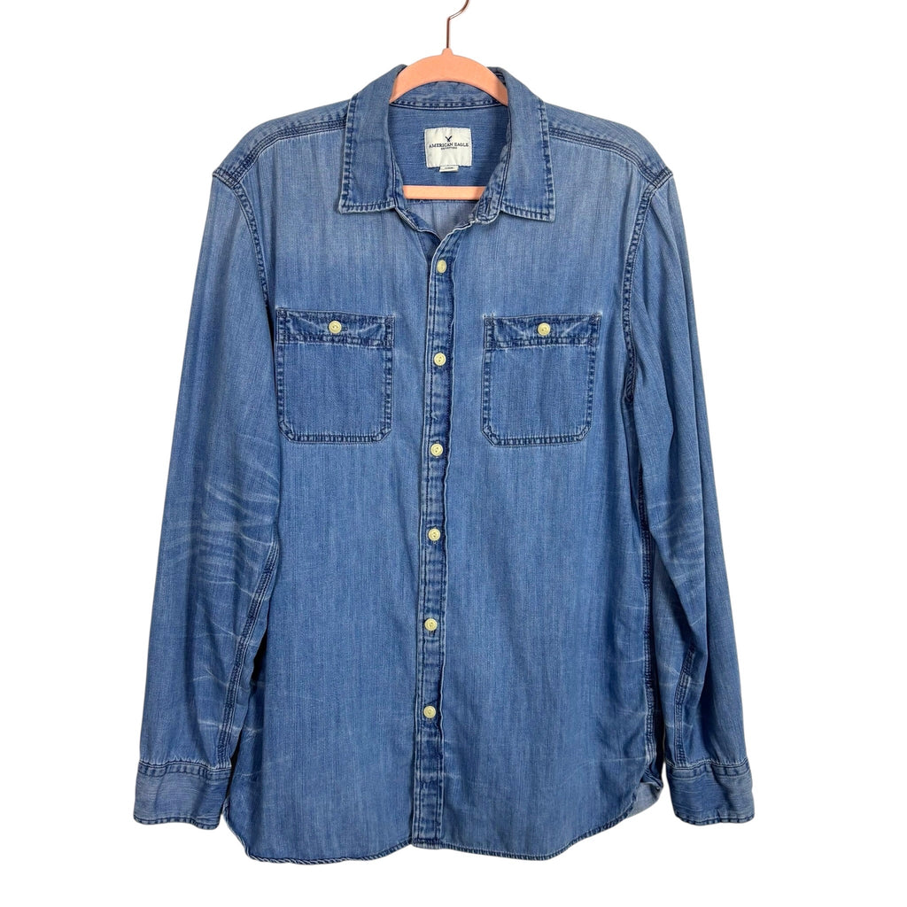 American Eagle Chambray Button Up Top - Size L (See Notes)