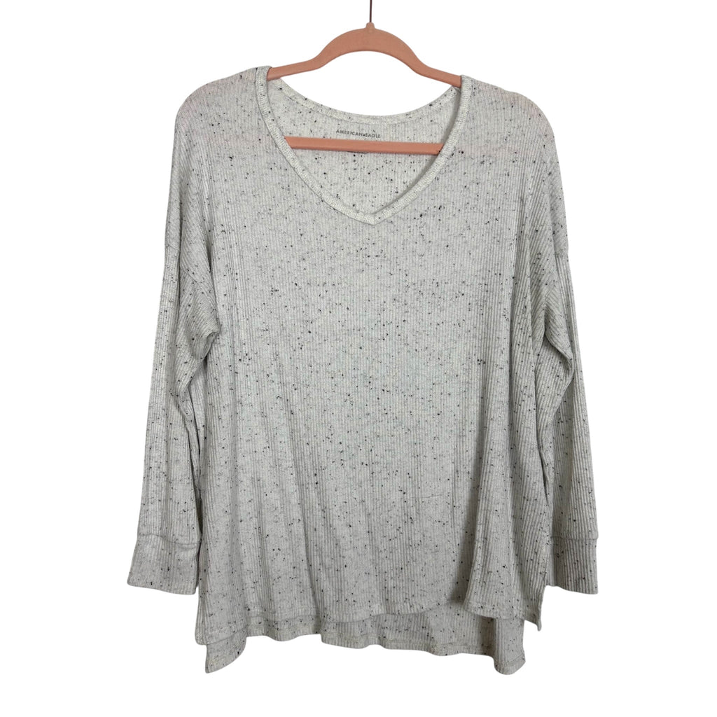 American Eagle White Speckled V-Neck Top - Size S (See Notes)