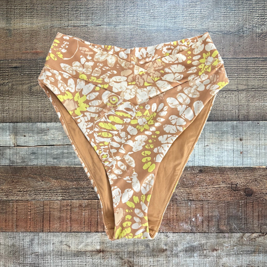 Aerie High Waisted Tan Printed Cross Waist Swim Bottoms - Size M