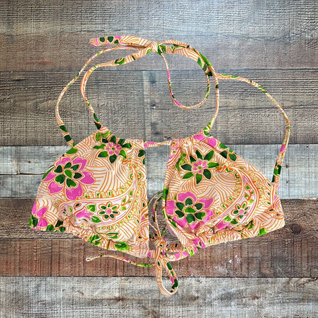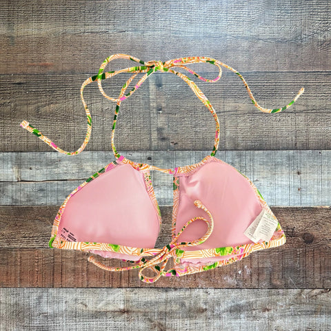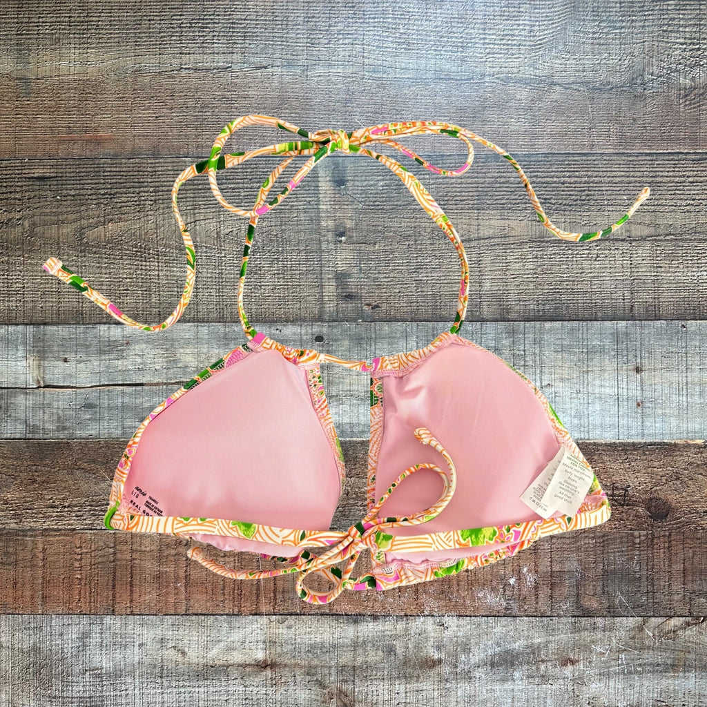 Aerie Pink/Orange/Green Printed Triangle Swim Top - Size L