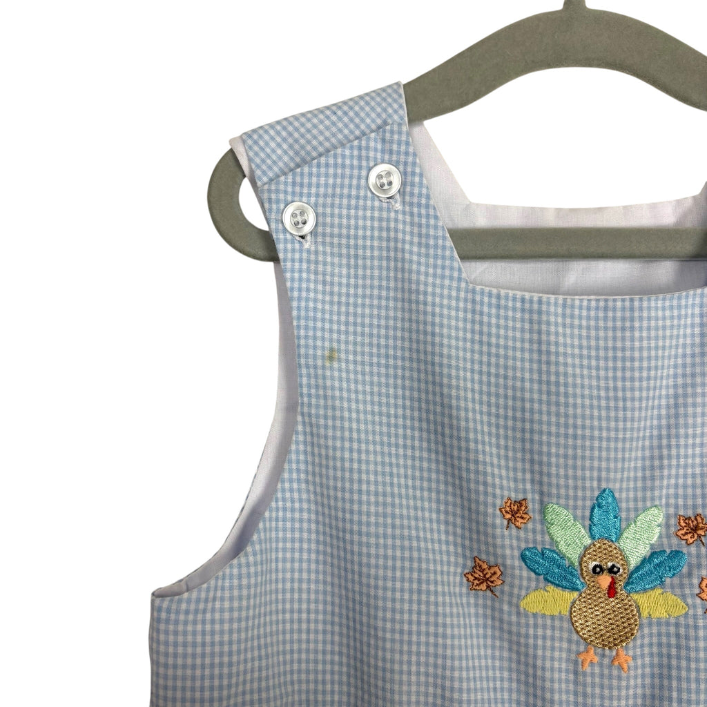 Bailey Boys Light Blue Gingham Turkey Outfit - Size ~2T (No Size Tag, Fits Like A 2T, See Notes)