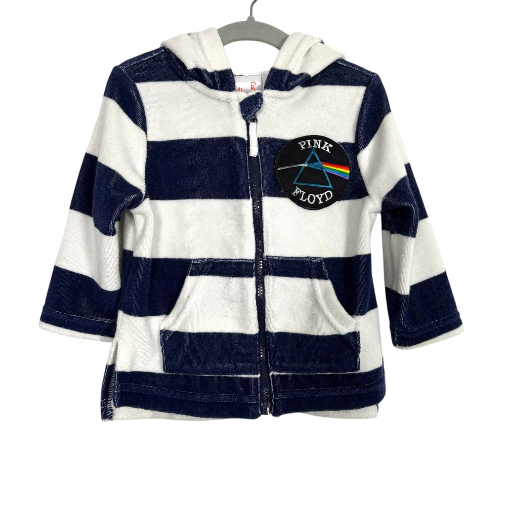Cat & Jack Navy and White Striped Pink Floyd Terry Hooded Jacket- Size 18M