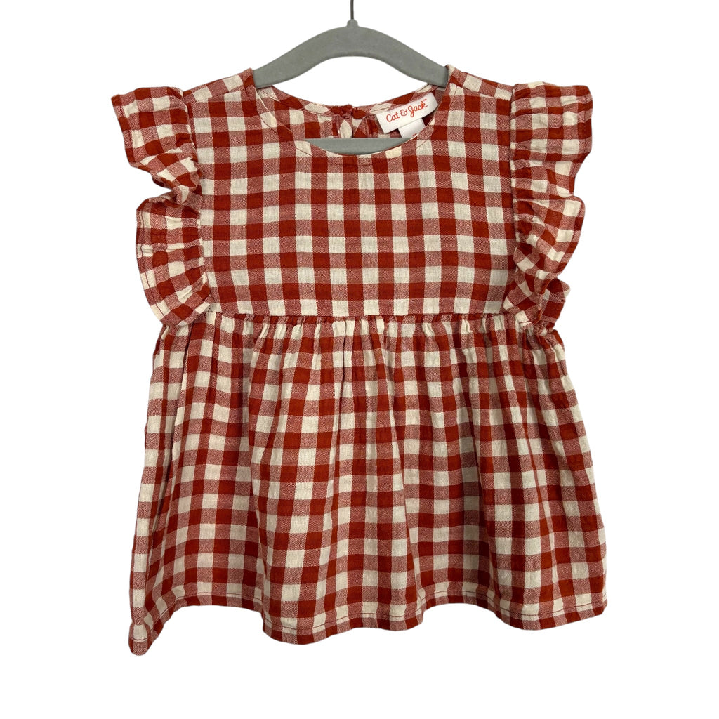Cat & Jack Rust and Cream Check Flutter Sleeve Top- Size 3T