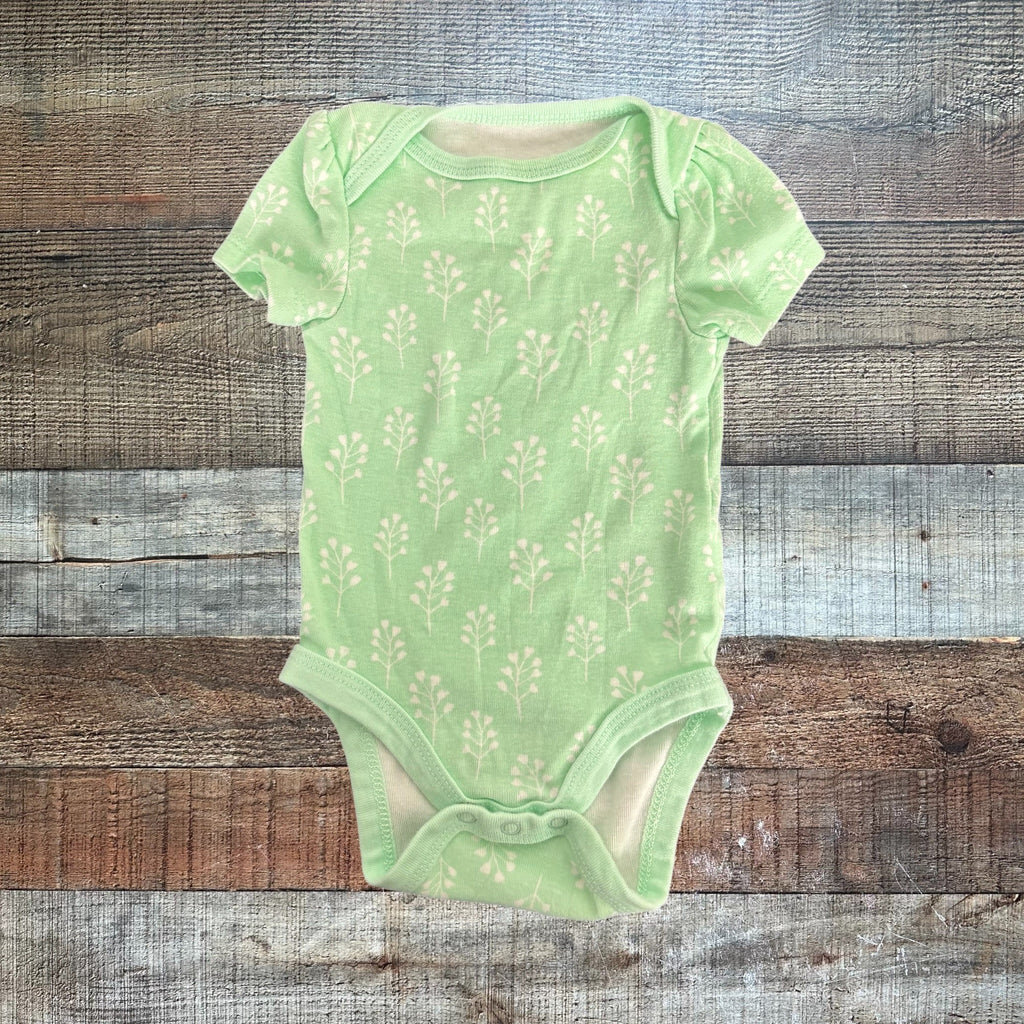 Cloud Island Green and White Printed Onesie- Size 0-3M