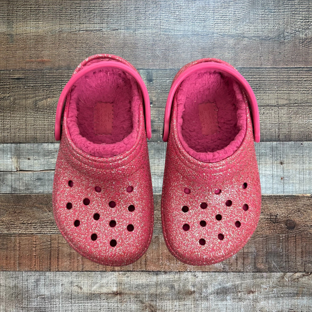 Crocs Magenta Sparkle Fleeced Lined Shoes - Size 9 Kids