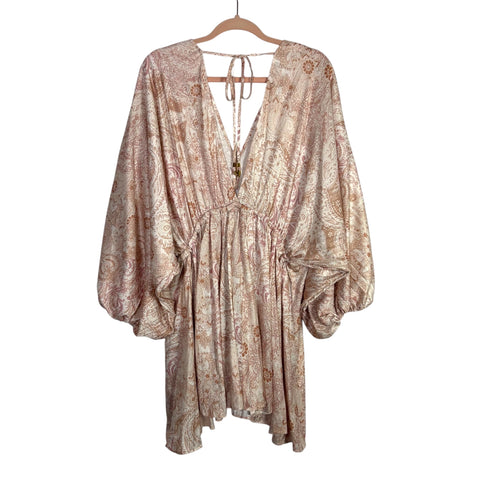 Free People Paisley Print Cinched Front Back Tie Satin Dress- Size S