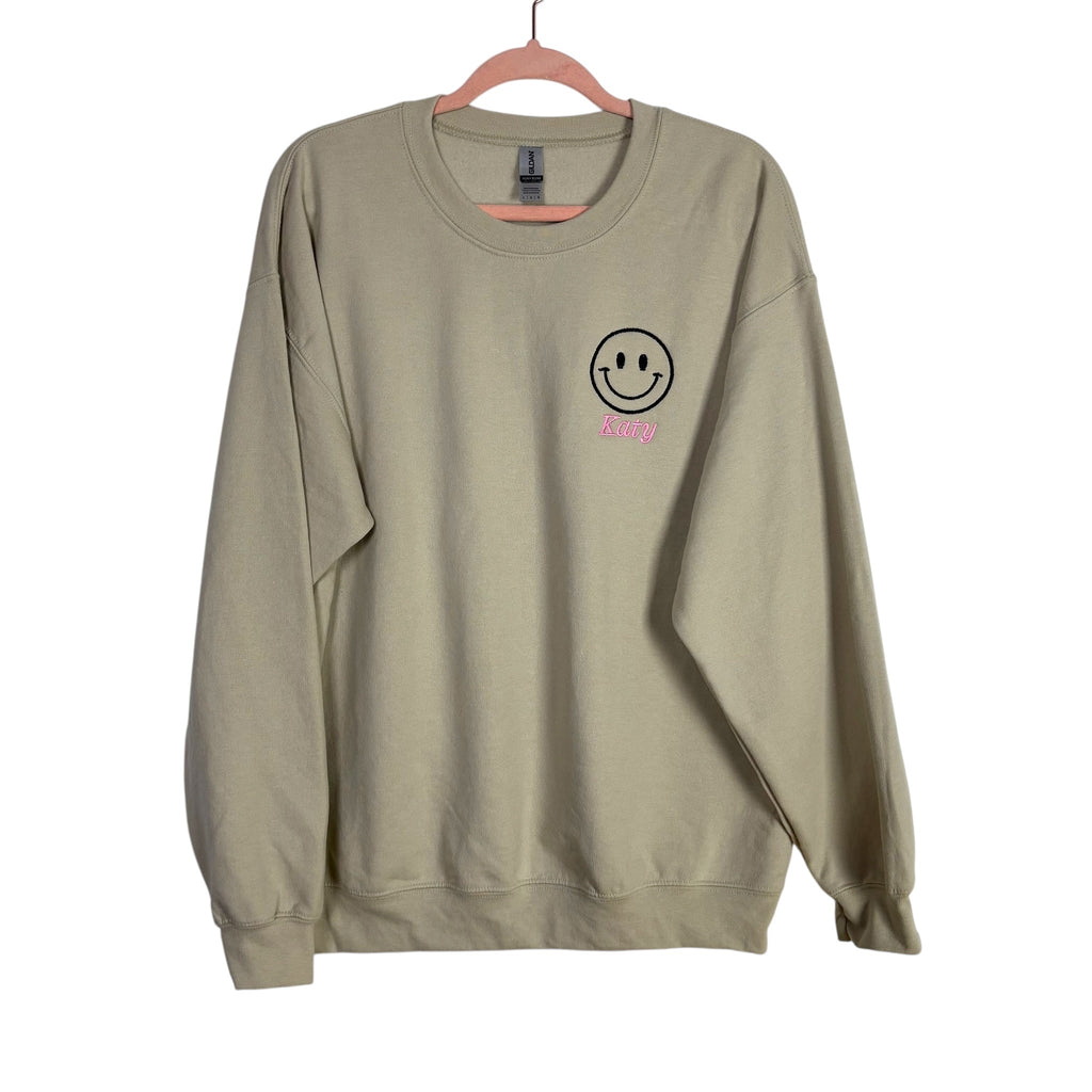 Gildan Beige Smiley Face Katy Sweatshirt- Size L