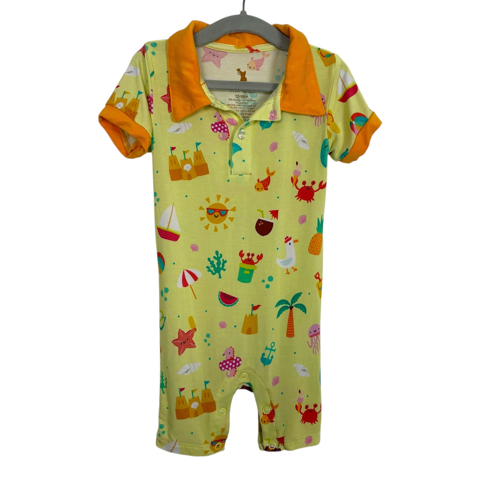 Kiki + Lulu Beach Print Bamboo Shorties Romper- Size 12-18M