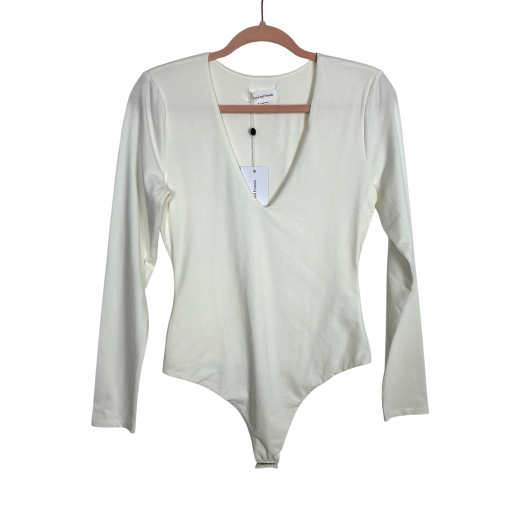 Lovers and Friends White Deep V Long Sleeve Bodysuit NWT - Size M