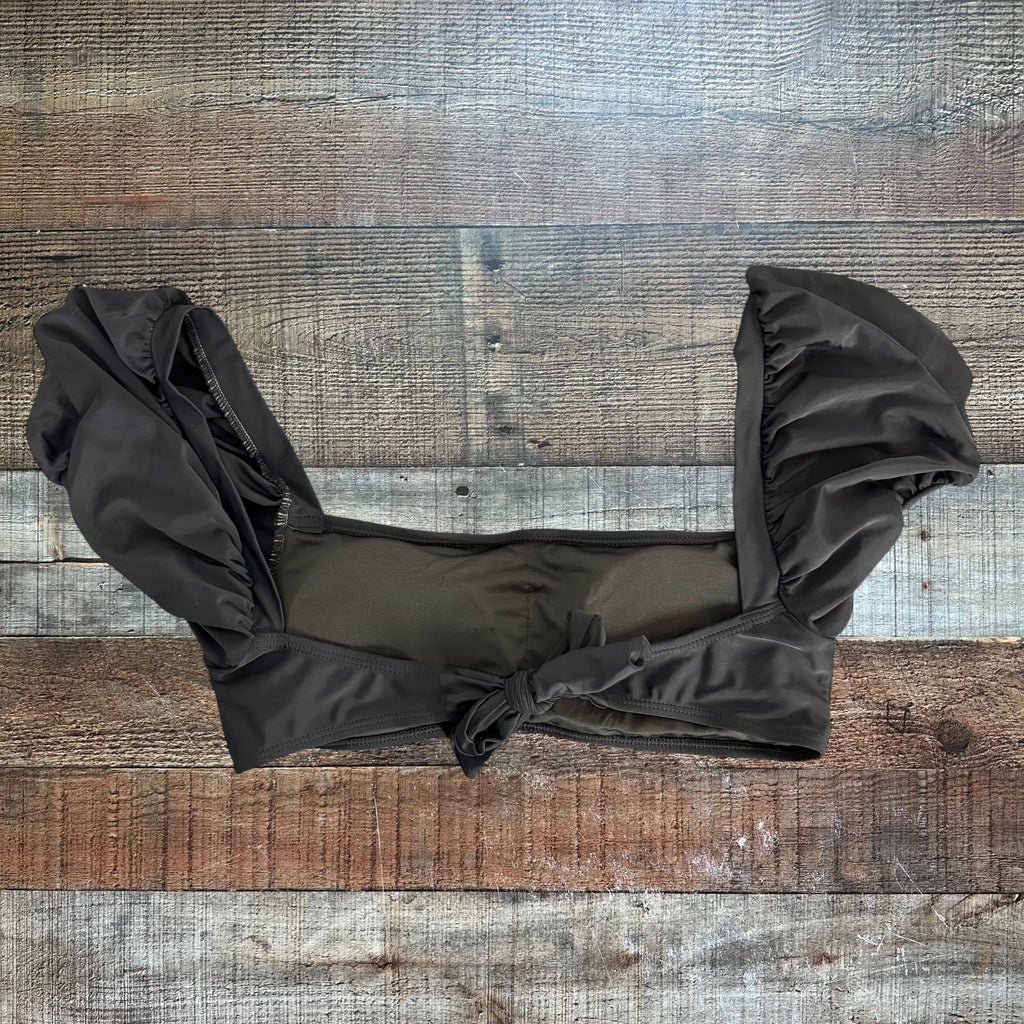 No Brand Black Puff Sleeves Tie Back Swim Top - Size M
