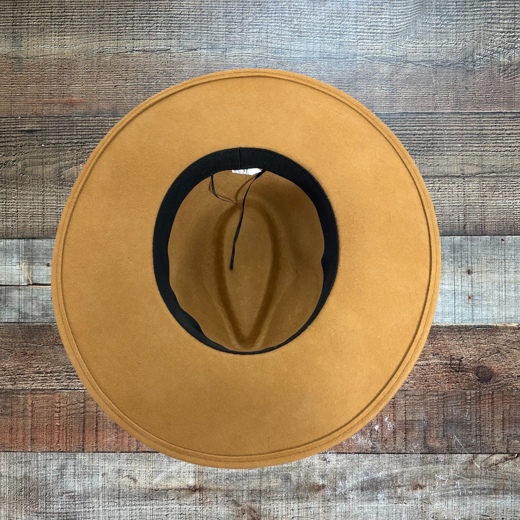 No Brand Camel Animal Print Belted Wool Wide Brim Hat