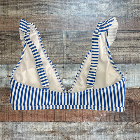 No Brand White/Blue Ruffle Swim Top - Size M