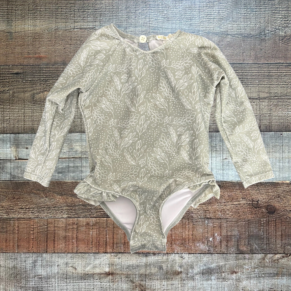 Ollie's Day Sage Leaf Print Swimsuit - Size 2-3Y