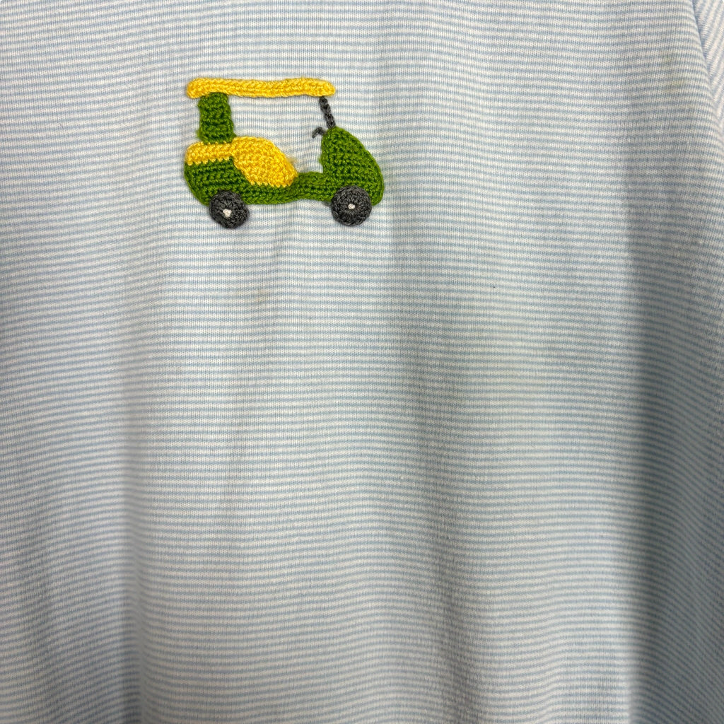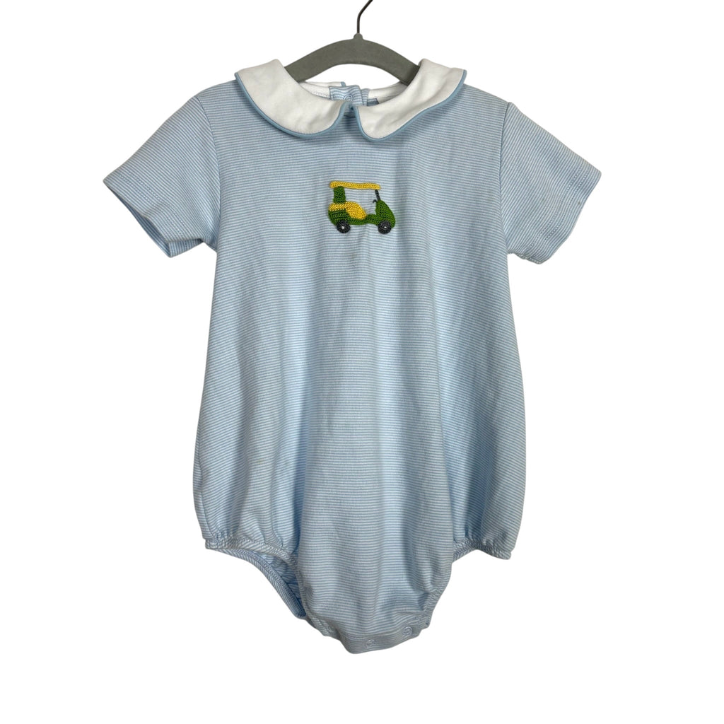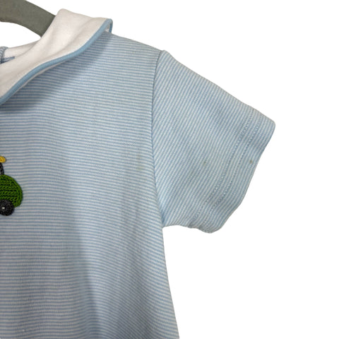 Shower Me With Love White/Blue Striped Golf Car Onesie - Size 24M (See Notes)