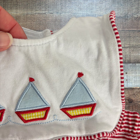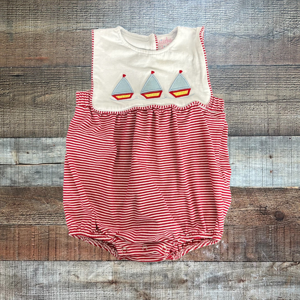Stitchy Fish Red/White Striped Embroidered Sailboats Bubble- Size 18M (see notes)