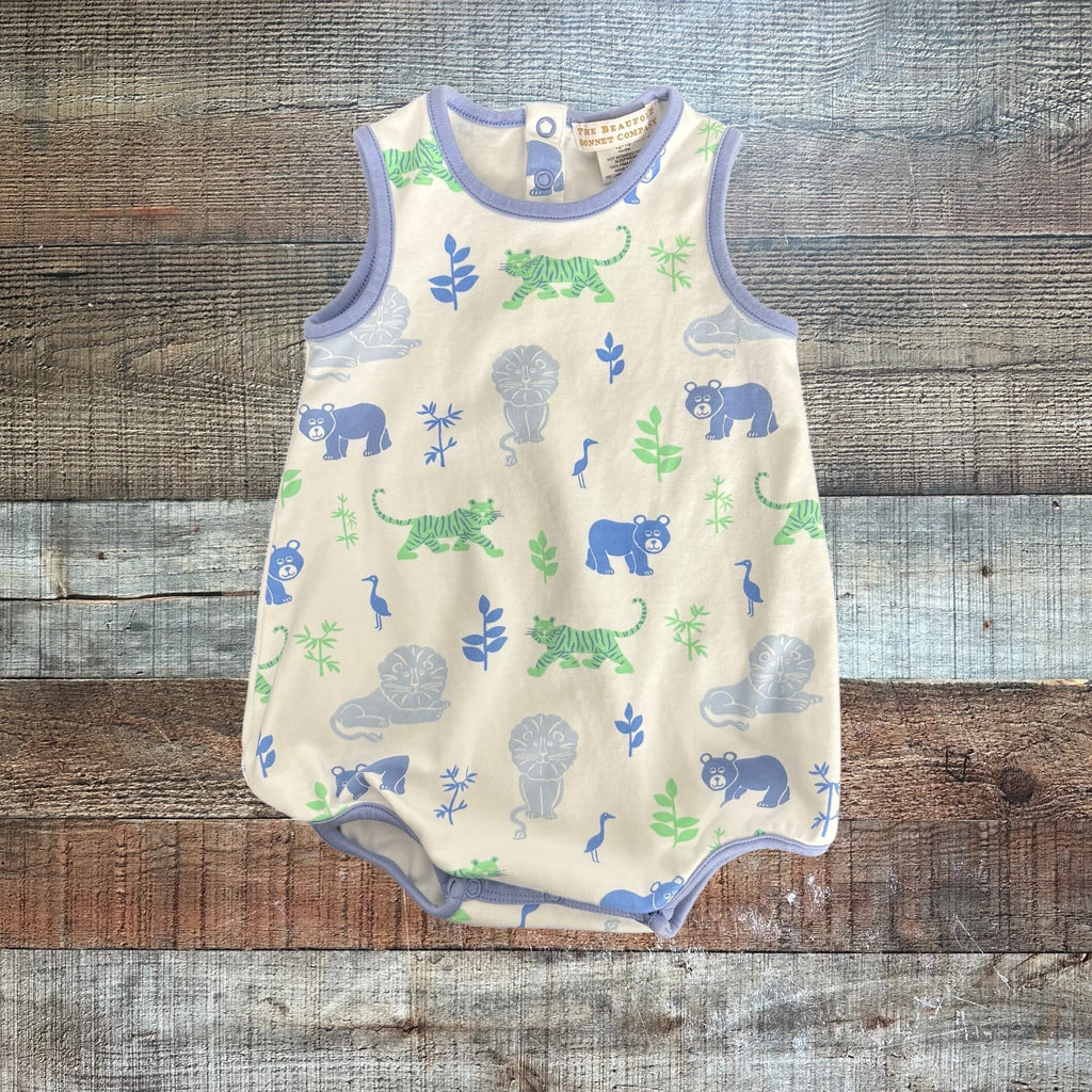 The Beaufort Bonnet Company White/Blue Zoo Animals Bubble- Size 12-18M